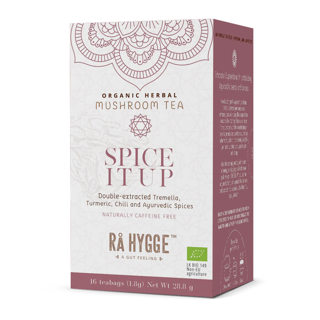 Spice It Up on teie lemmiksegu külmemateks päevadeks, seedimise parandamiseks pärast sööki või alati, kui vajate kosutavat heaolulaksu. Sertifitseeritud mahepõllumajanduslik. Kofeiinivaba. Rikastatud tremella seenega.